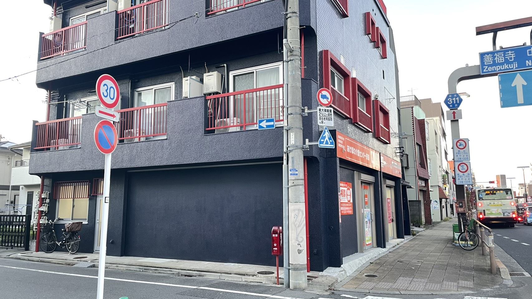 (環八通りのトヨタモビリティ東京 井荻店の隣の紺色のビル)